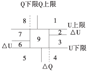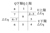 VQC的控制目标采用基于九区图的控制策略。为实现母线电压和无功功率综合控制就是利用电压、无功2个判据量对变电站主变压器高压侧无功和目标侧电压进行综合调节,以保证电压在合格范围内,同时实现无功基本平衡。按电压、无功的限制整定方式进行综合控制时,电压、无功的上下限如图所示。